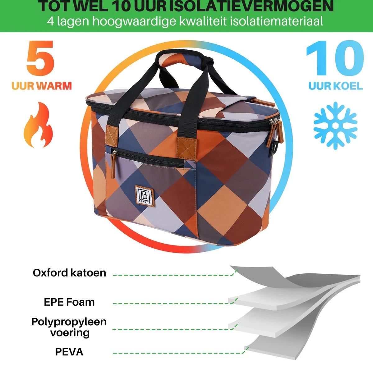 Brisby 4 Laags Geïsoleerde Koeltas – Boodschappentas 21 Liter – Block
