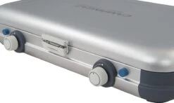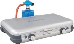 Dankzij de platte vorm als het kooktoestel is ingeklapt en het gewicht van slechts 3.8 kg is dit camping gas kooktoestel compact. Het zorgt er voor dat je ruimte kan besparen bij het inpakken van je auto of caravan en dankzij de twee ingebouwde handvaten is het makkelijk om deze overal mee naar toe te nemen.