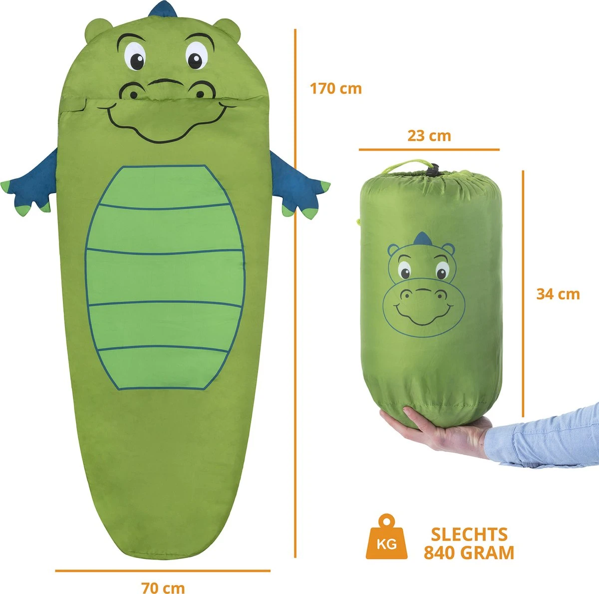 Geef je kind de ruimte om vrijuit te kunnen bewegen in deze royale slaapzak. Met 170x70cm biedt Dutch Mountains voor kinderen tot 8 jaar meer dan genoeg bewegingsvrijheid. Opgeborgen slechts 34 x 23cm en zelfs passend in een grote rugtas wanneer je kind uit logeren gaat.