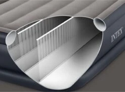 De tweekamerconstructie zorgt ervoor dat de hoeslakens op hun plek blijven zitten en door de zachte toplaag in combinatie met de Fiber-Tech Technologie biedt het Intex Deluxe Pillow Rest Raised Classic luchtbed meer comfort.