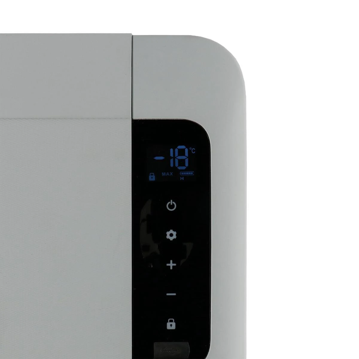Deze compressorkoelbox van Mestic heeft een zeer krachtig koelvermogen en lijkt qua functioneren op de koelkast zoals je die thuis gewend bent. Hij heeft een koelvermogen van +10 °C tot -18 °C. Dat betekent dus dat je hem zelfs als vriezer kunt gebruiken. Je kunt de gewenste temperatuur eenvoudig instellen op het touch LCD-display van de box. De omgevingstemperatuur heeft geen enkele invloed op de koelprestaties van deze koelbox, dus je kunt altijd lekker bij de camper of caravan genieten van een verkoelend ijsje! Deze koelbox heeft hetzelfde koelvermogen op 12 V als op 230 V. Je kunt hem dus in de auto gebruiken, maar ook aansluiten op een stopcontact. Hiervoor heb je wel de bijbehorende adapter nodig.